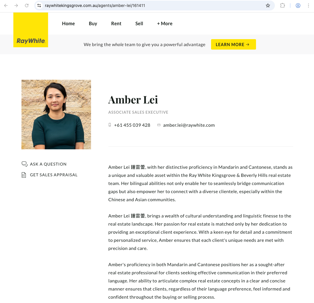 电邮: amber.lei@raywhite.com