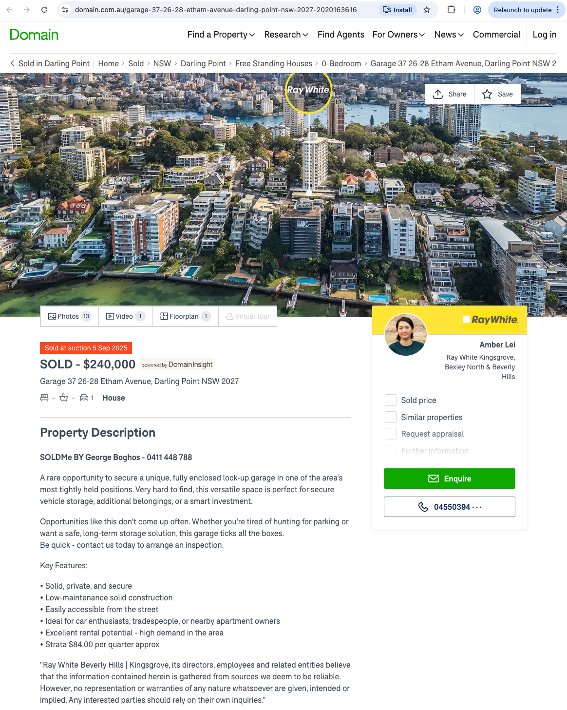 Lock-up garage at 26 Ethan Avenue, Darling Point.